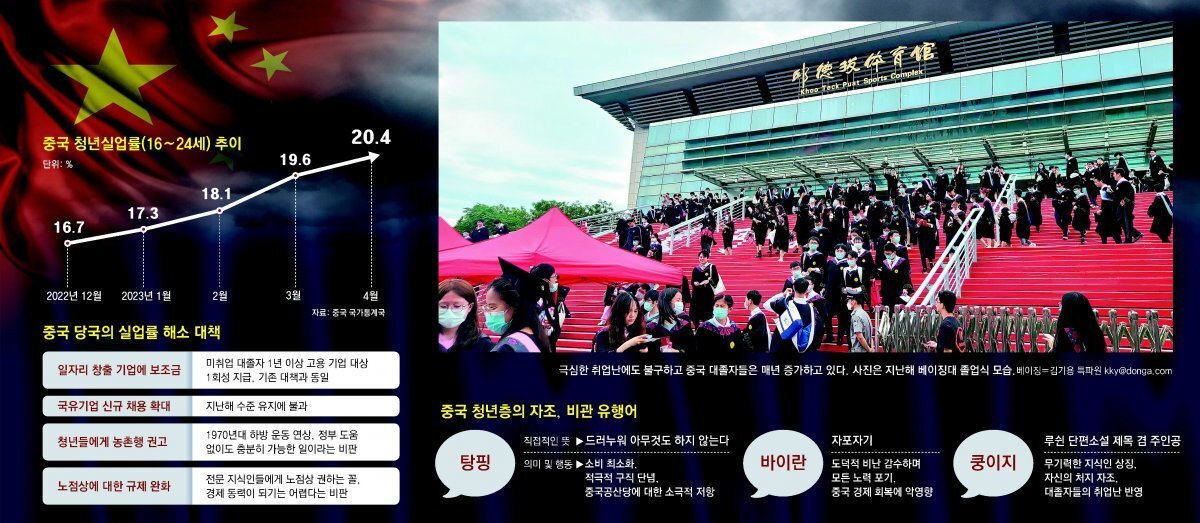 일자리를 찾지 못한 청년 세대의 불만 표출이 쏟아질 것을 두려워하는 중국공산당은 민감해질 수밖에 없다. 지난해 11월 ‘공산당 퇴진, 시진핑 퇴진’ 구호가 등장한 대학생 ‘백지 시위’도 단순히 엄격한 ‘제로 코로나’ 정책에 대한 반대라기보다 경제 상황에 대한 불만이 반영됐다는 시각이 많다.