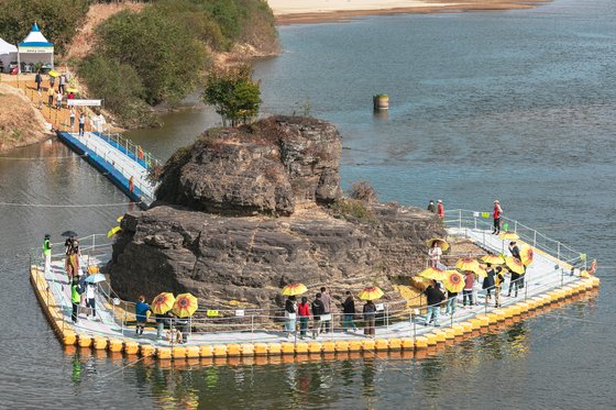 지난해 10월 열린 '2022 의령 리치리치 페스티벌' 당시 경남 의령을 찾은 많은 관광객들이 '솥 바위'를 둘러보고 있다. [사진 의령군]