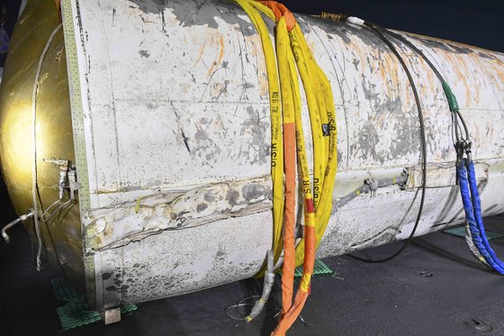 합동참모본부는 15일 오후 8시 50분쯤 서해 어청도 서쪽 200㎞ 바다에서 북한이 우주발사체라고 주장하는 로켓의 잔해를 인양했다고 16일 밝혔다. 경기 평택시 해군 2함대 사령부로 옮겨진 이 잔해는 앞으로 국방과학연구소(ADD) 등 전문기관에서 정밀 분석이 이뤄질 예정이다.